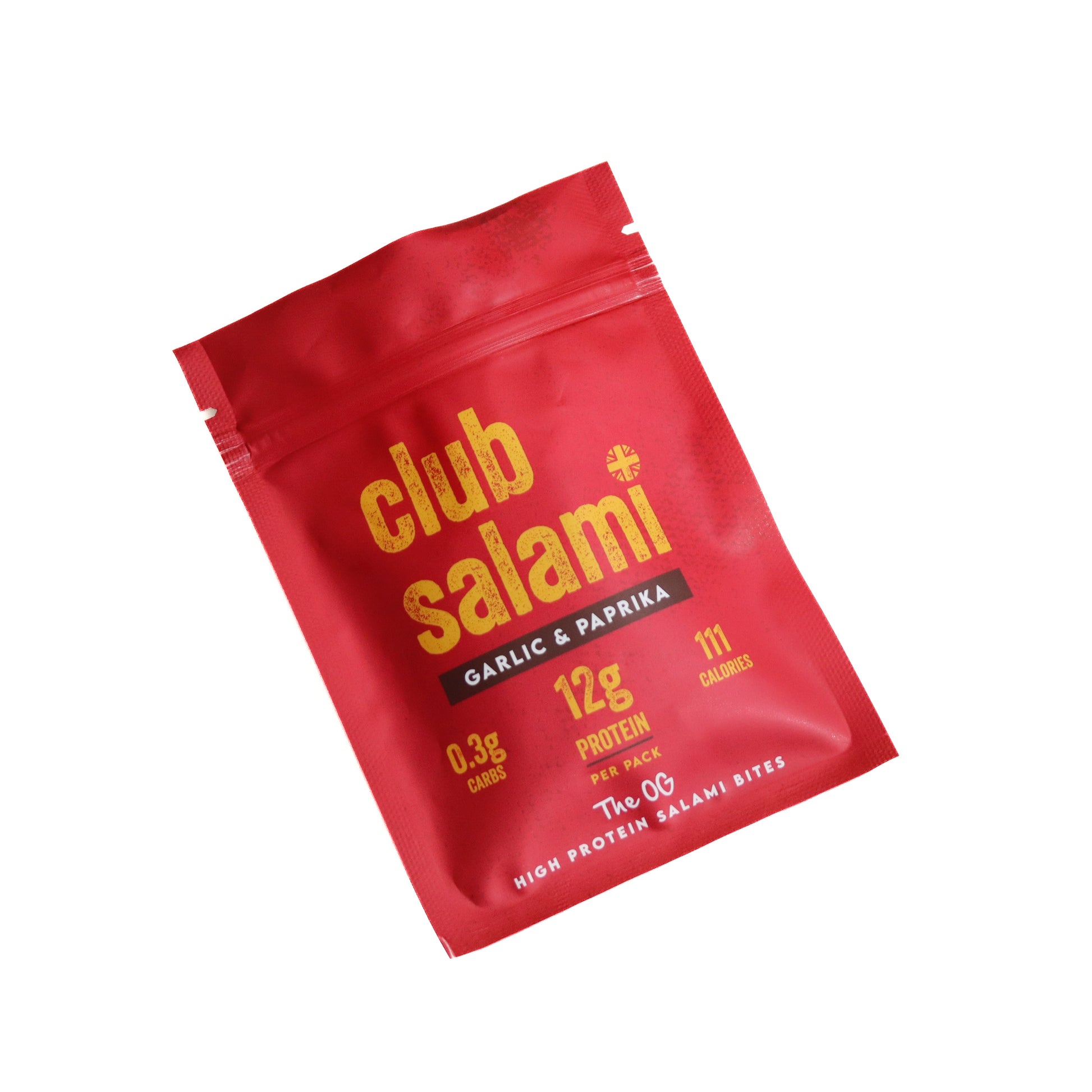 Soft, sliced salami high protein bites seasoned with garlic and paprika. Bold, rich and deeply savoury. Full of flavour without being overpowering. Air dried, not baked.